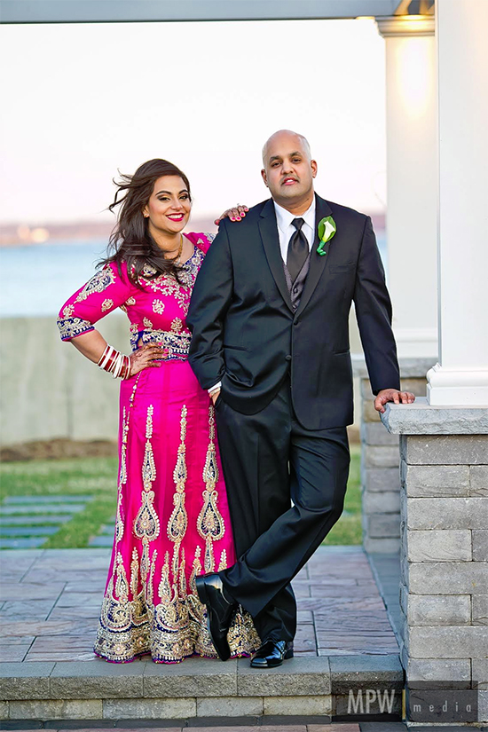 DJ, MC, Dhol player, lighting tech., one assistant, premium sound system, sound system for cocktail hour, 36 color kinetics LEDs for up lighting, 2 Martin 250 Entour moving heads on vertical trusses providing different lighting effects through out the evening, and custom monogram.