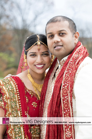 DJ, MC, Dhol player, lighting tech., one assistant, premium sound system, sound system for cocktail hour, 24 color kinetics LEDs for up lighting, 4 Martin 250 Entour moving heads on vertical trusses providing different lighting effects through out the evening, and custom monogram.